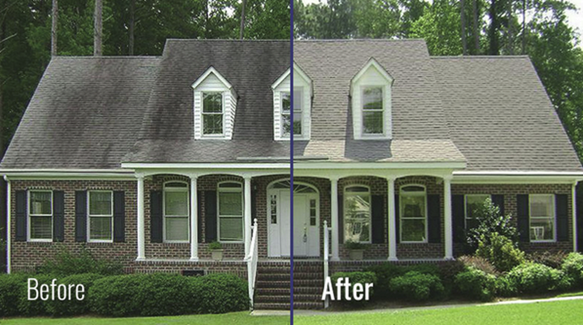 We safely remove dirt, algae, and moss from your roof using low-pressure softwashing.